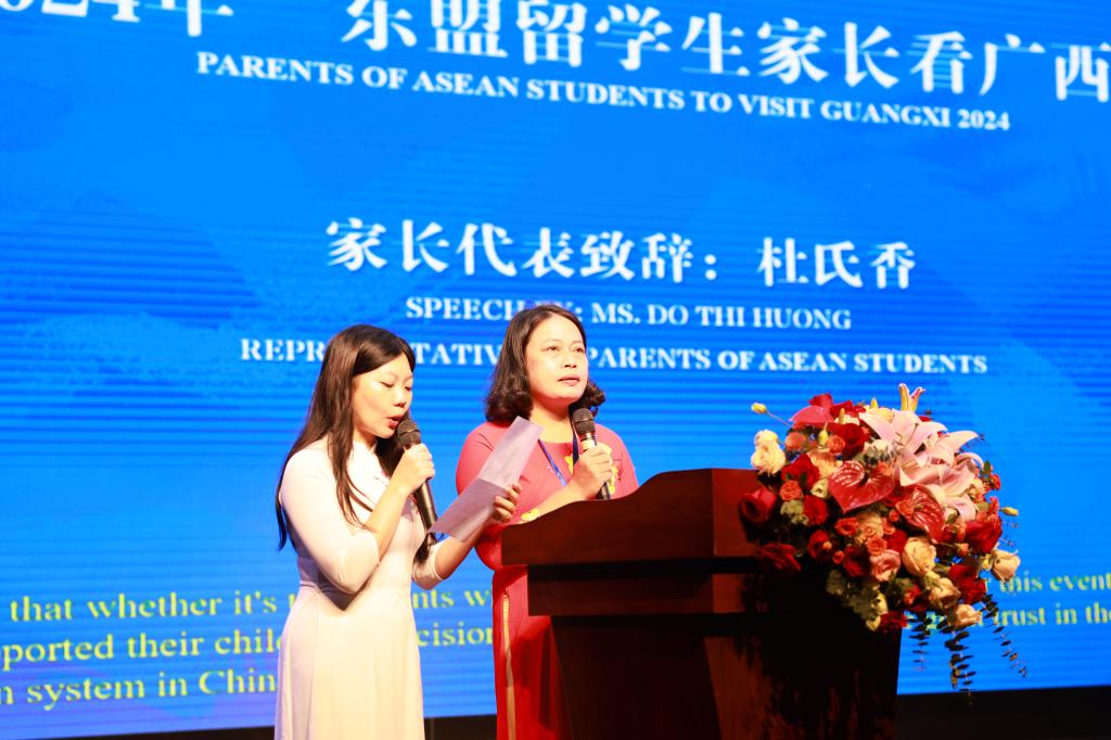 9月24日上午,“2024年東盟留學(xué)生家長看廣西”活動在廣西大學(xué)匯學(xué)堂開幕,活動旨在通過讓東盟國家留學(xué)生的家長親身體驗廣西的教育環(huán)境與文化氛圍,進(jìn)一步促進(jìn)中國與東盟國家之間的人文交流與合作。此次活動由廣西壯族自治區(qū)教育廳主辦、廣西大學(xué)承辦,吸引了來自越南、老撾、泰國等7個東盟國家的近百名留學(xué)生家長參加。
