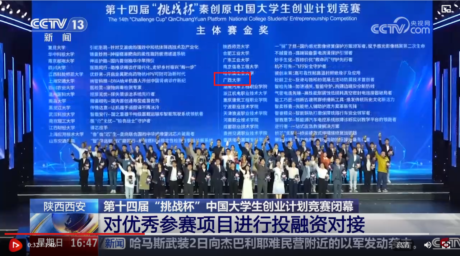 昨天(2日),由共青團中央、教育部、人社部、中國科協等部門共同主辦的第十四屆“挑戰杯”中國大學生創業計劃競賽在陜西西安閉幕。大賽聯動多方資源,為優秀參賽項目提供投融資對接,創業培訓指導、孵化轉化落地支持。