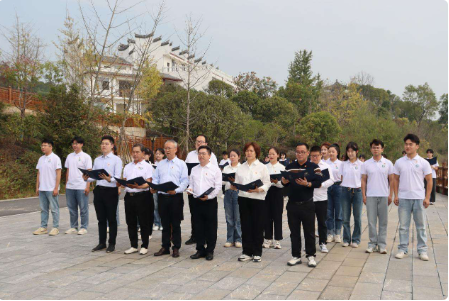 儀式后,全體黨員重溫入黨誓詞。接著,師生們齊聲朗誦了《湘江之歌》。“一草一木一忠魂,一山一石一豐碑”……通過朗誦,大家仿佛看到了紅軍戰士們浴血奮戰的英勇身影,感受到了他們堅定的革命信念和無私的奉獻精神。師生們用聲音傳遞出對英雄們的無限緬懷和敬仰,表達了對中國共產黨精神的堅定傳承和發揚光大的決心。