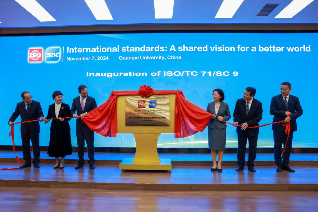 11月7日,由廣西壯族自治區市場監管局和廣西大學聯合主辦的“美好世界的共同愿景”國際標準化主題活動在廣西大學舉辦,并舉行鋼-混凝土組合結構和混合結構分委會(ISO/TC 71/SC 9)秘書處揭牌儀式。