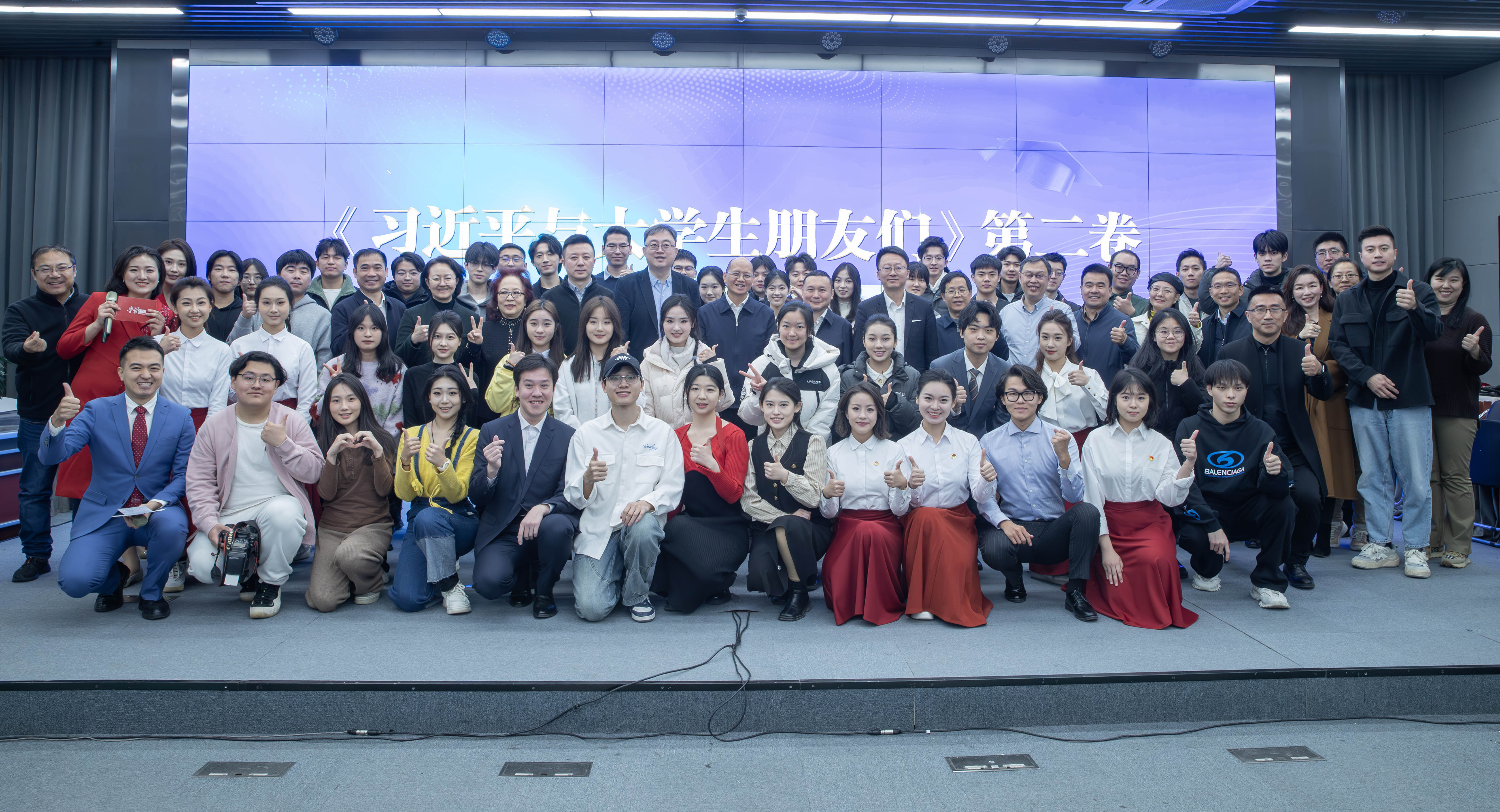 2024年5月,《習近平與大學生朋友們》第二卷正式出版。“學習強國”學習平臺攜手北京大學、清華大學、暨南大學、西北大學、中國傳媒大學、廣西大學、北京聯合大學、天津傳媒學院、武漢傳媒學院、浙江工業大學、山東青年政治學院等11所高校師生,歷經5個多月的精心制作,聯合錄制了《習近平與大學生朋友們》第二卷有聲書。活動現場,來自清華大學、暨南大學、中國傳媒大學等高校的師生分享了有聲書錄制的體會。清華大學新聞與傳播學院學生楊寧表示,總書記的囑托——“立大志、明大德、成大才、擔大任”,指引著新時代青年在追求夢想的過程中實現自我價值與社會價值的統一。中國傳媒大學播音主持藝術學院綜藝主持系主任查謙表示,在《習近平與大學生朋友們》第二卷有聲書錄制過程中,師生們精讀細研、反復打磨,充分展現了“生動自然、青春朝氣、中國氣派”的播讀風格。互動環節,北京大學、北京聯合大學、天津傳媒學院等高校的青年學子現場播讀書中的精彩篇章,展現了新時代青年的蓬勃朝氣與昂揚風貌。