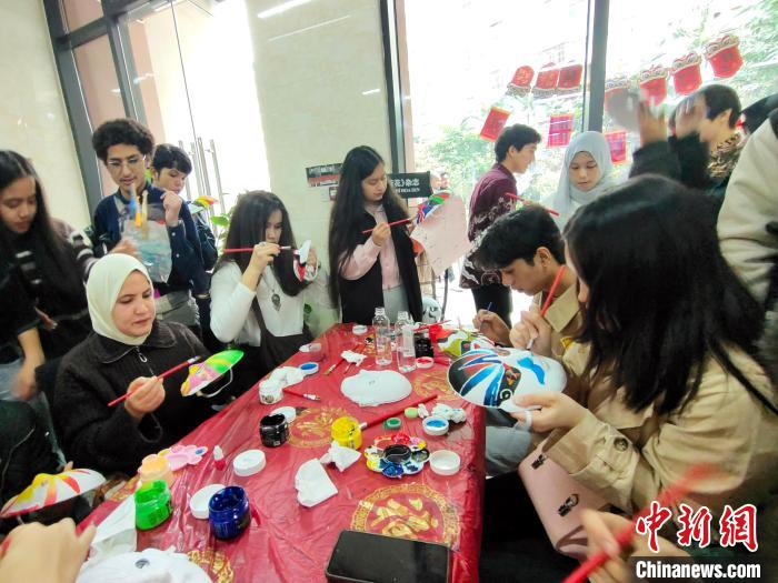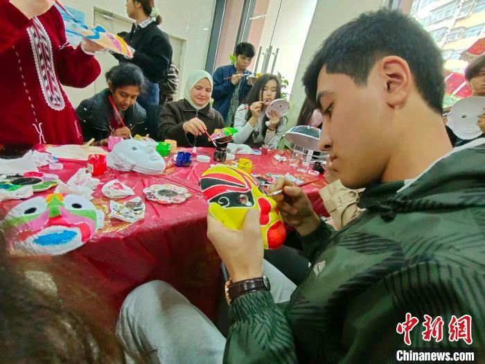 圖為留學生在畫臉譜。中新網記者 黃艷梅 攝