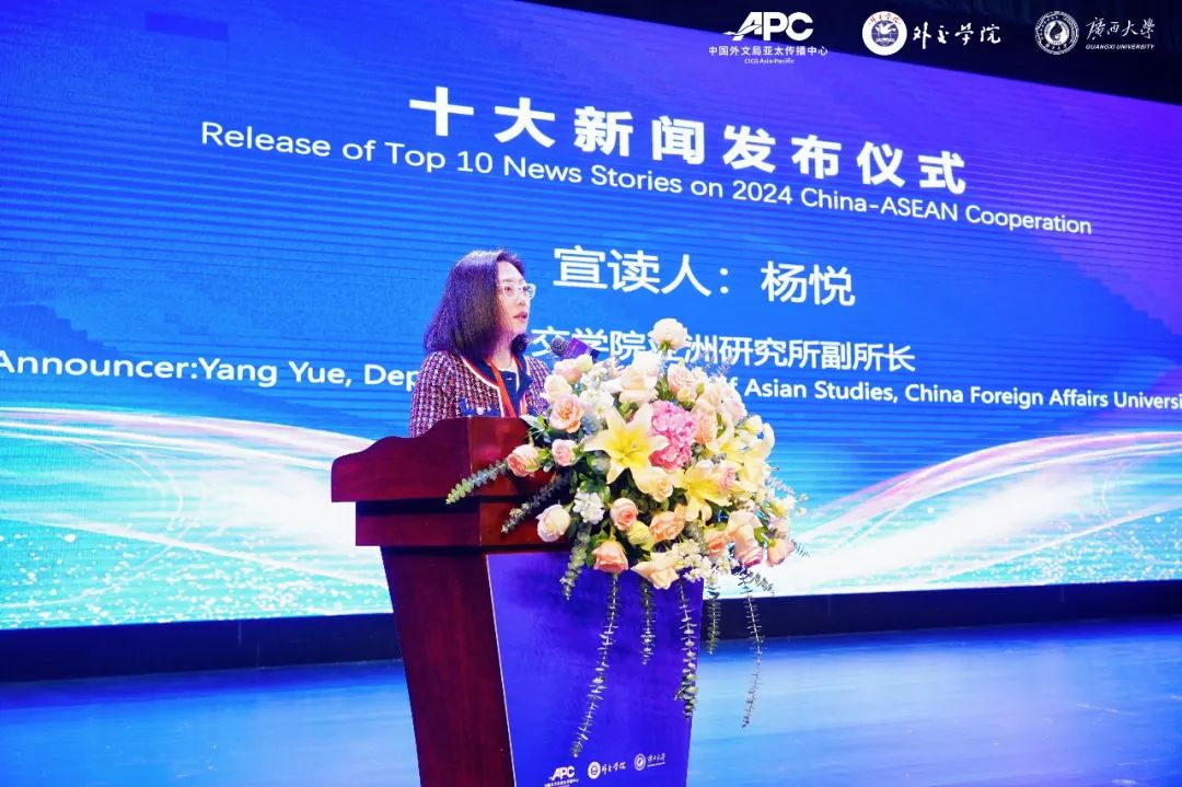 2月27日,南寧,楊悅代表主辦方正式發(fā)布“2024年中國-東盟合作十大新聞”。主辦方供圖