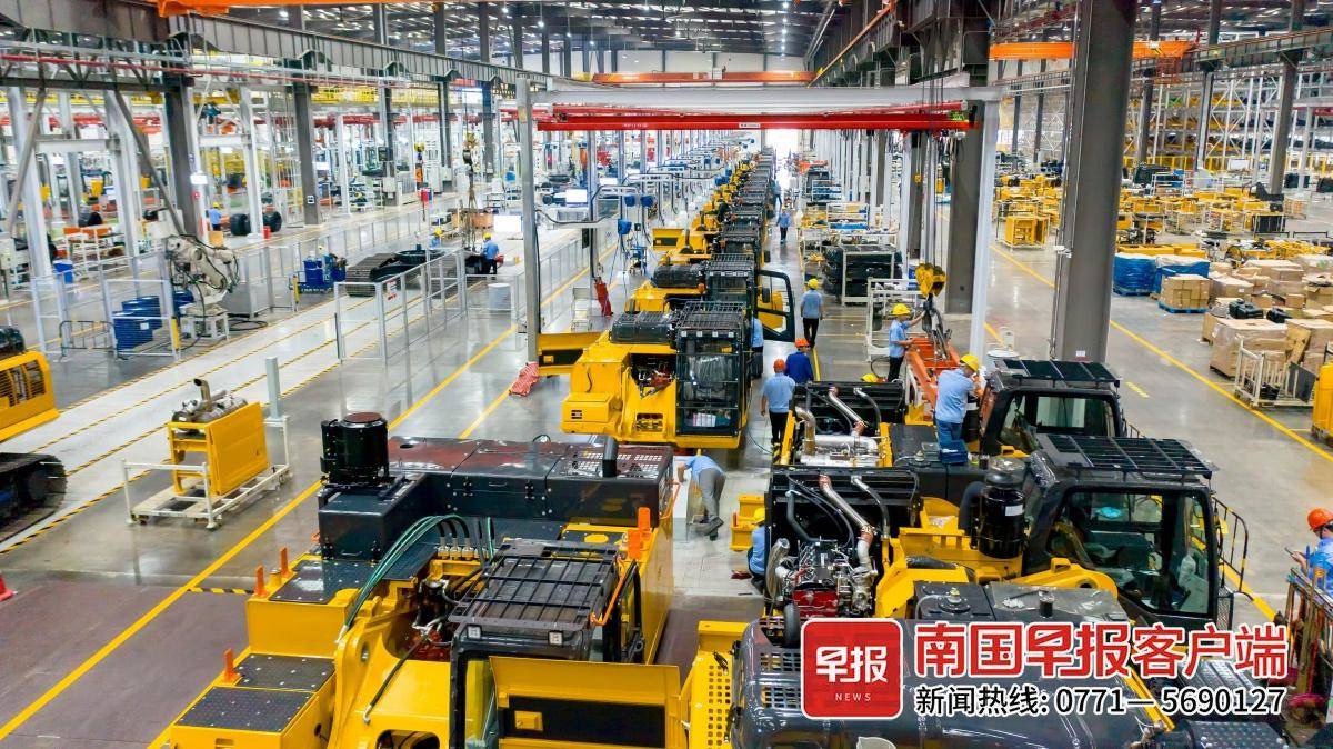 柳工挖掘機智慧工廠大型挖掘機裝配線。 唐幸攝