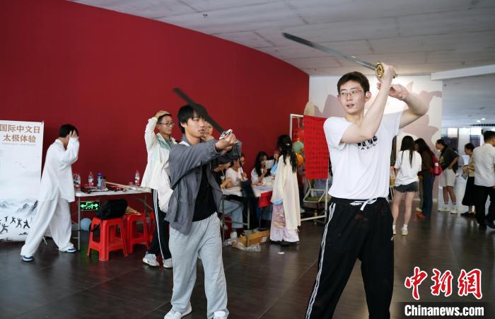 4月20日,在廣西大學(xué)大學(xué)生活動(dòng)中心,700余名中外師生參加“國際中文日”活動(dòng),體驗(yàn)漢字之美,沉浸式感受中國傳統(tǒng)文化的深厚底蘊(yùn)與豐富內(nèi)涵?;顒?dòng)現(xiàn)場(chǎng)設(shè)置了書法、拓印、漆扇、投壺、剪紙、茶藝、猜燈謎、太極拳、甲骨文猜字等豐富多彩的文化體驗(yàn)項(xiàng)目,吸引師生踴躍參與。圖為太極體驗(yàn)現(xiàn)場(chǎng)。中新網(wǎng)記者 黃艷梅 攝