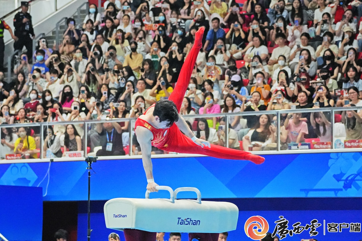 5月19日下午,正在南寧三塘體育比賽訓(xùn)練基地極限館進行的2025年全國體操錦標賽結(jié)束第五個比賽日爭奪,決出兩個項目名次。男子個人全能項目中,湖南選手張博恒、江蘇選手侍聰、廣西選手蘭星宇分別獲得金、銀、銅牌;男子鞍馬吊環(huán)雙杠全能項目則以江蘇老將尤浩勝出告一段落,廣西選手蘭星宇、湖南選手張博恒分列二、三名。
