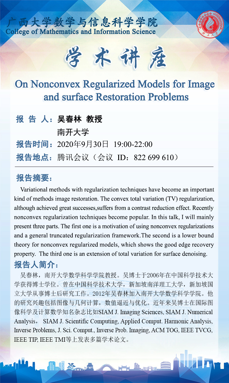 上一條:數學與信息科學學院學術講座:Stability of global Maxwellian for non-linear Fokker-Planck equation