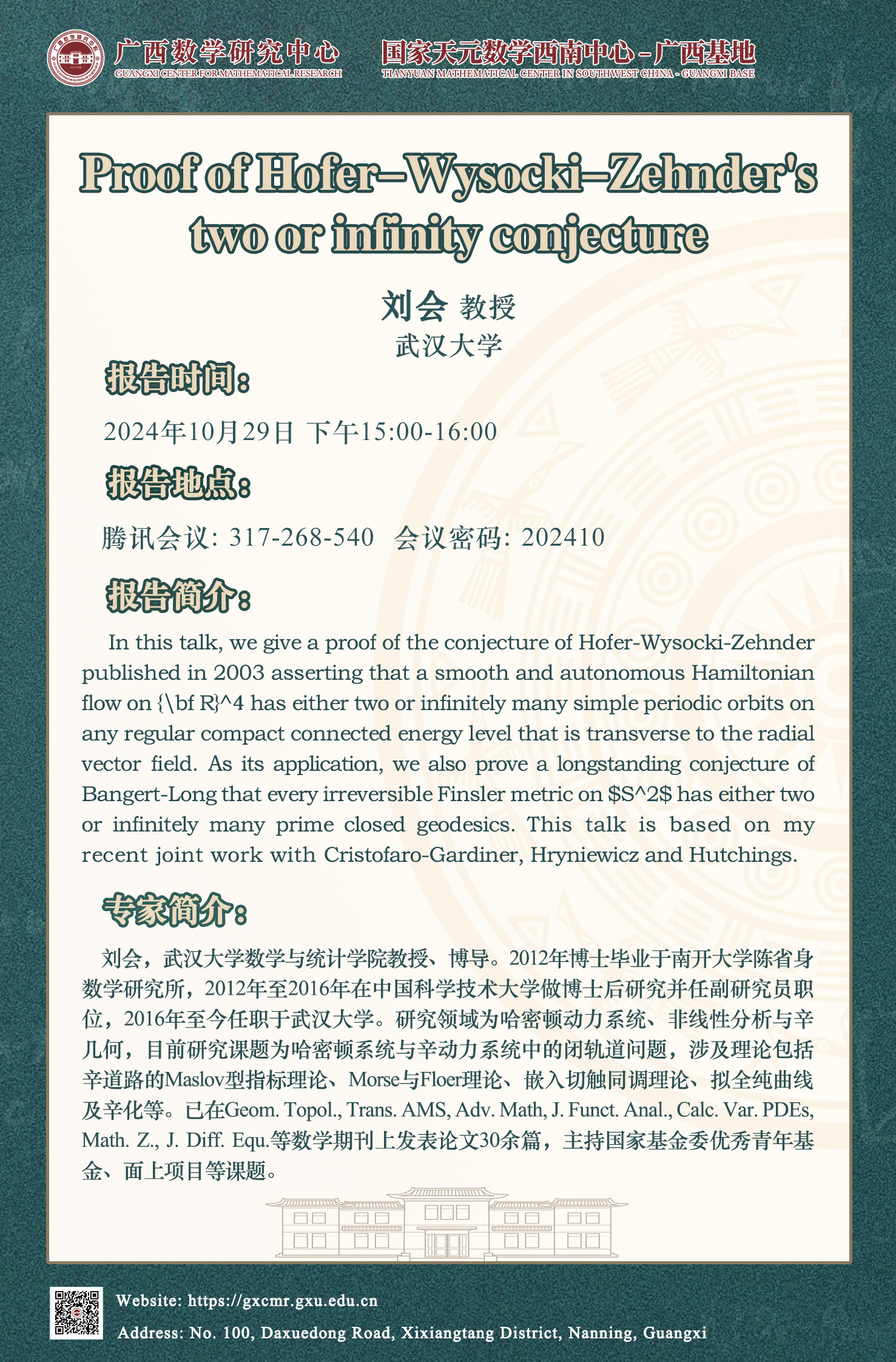上一條:國家天元數學西南中心-廣西基地、廣西數學研究中心學術報告:Spectral properties of Hodge Laplacians on Graphs