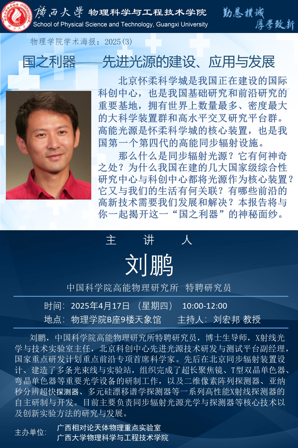 上一條:物理科學與工程技術學院學術報告:氮化物半導體紫外光電探測技術