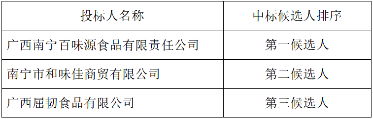 中標信息:見下表。如第一中標候選人放棄中標,順延為第二中標候選人,以此類推。