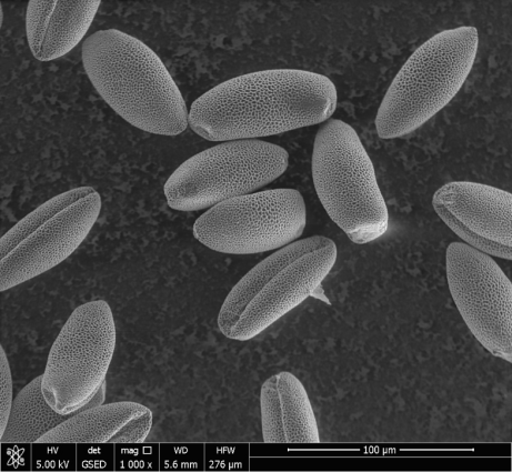 圖中可見幽蘭花粉個體及表面結構;
