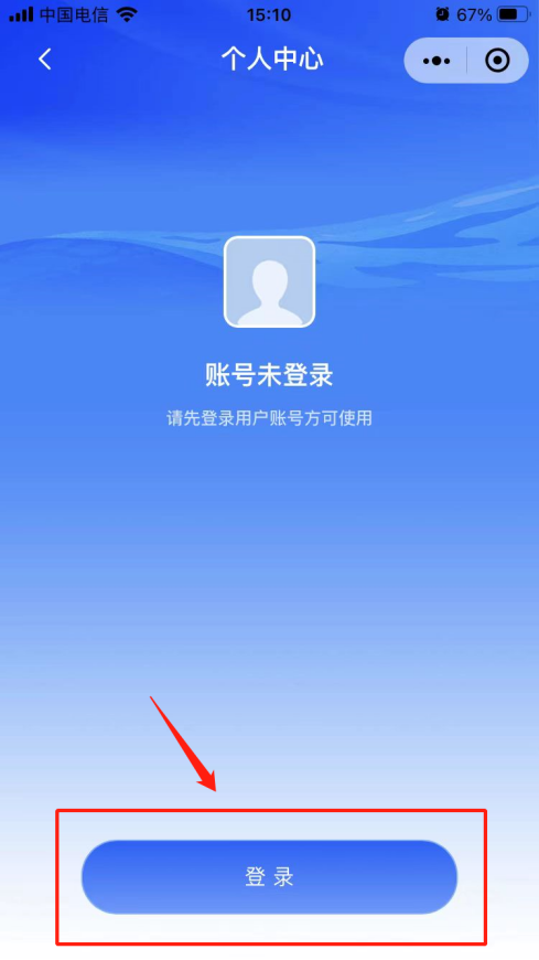 2. 首次進入需登錄,點擊“個人中心”→“登錄”→“微信登錄”。