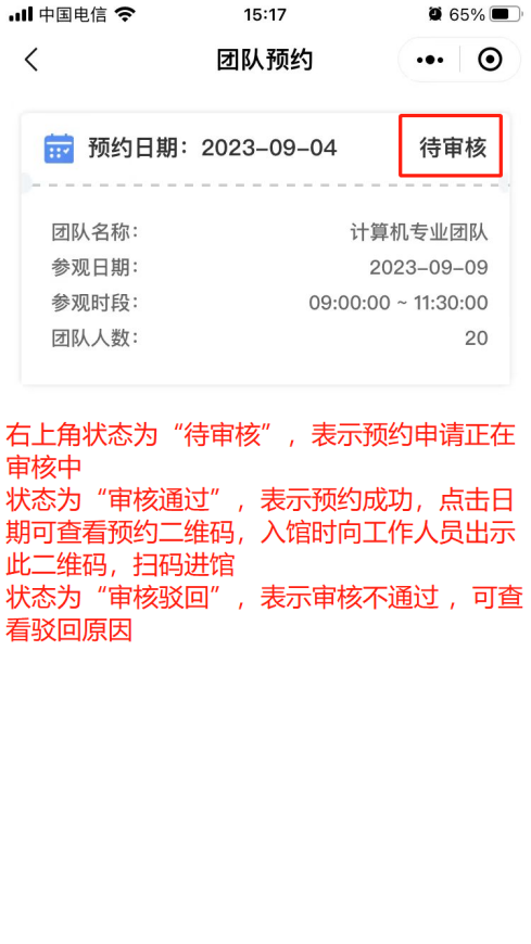 6. 團隊預約記錄/預約審核結果可在個人中心-團隊預約門票中查看。