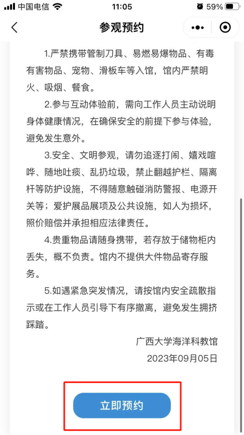 2. 閱讀預約須知,點擊“立即預約”按鈕。